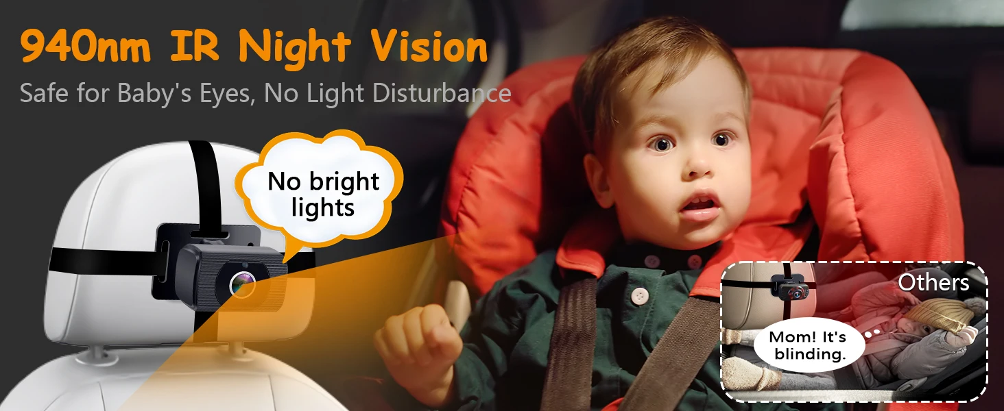 Car Baby Mirror Dual Channel Back Seat Baby Car Camera HD 1080P with Rear View Car Monitor 6.8'' IPS Screen Kids Night Vision Car Camera
